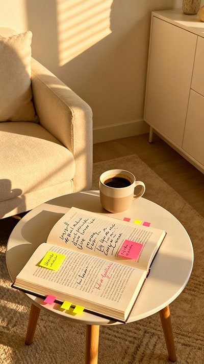 - Identität > Ziele: Ziele sind nett, aber Identität zieht stärker. „Ich bin jemand, der liest“ wirkt anders als „Ich will 12 Bücher im Jahr schaffen“.